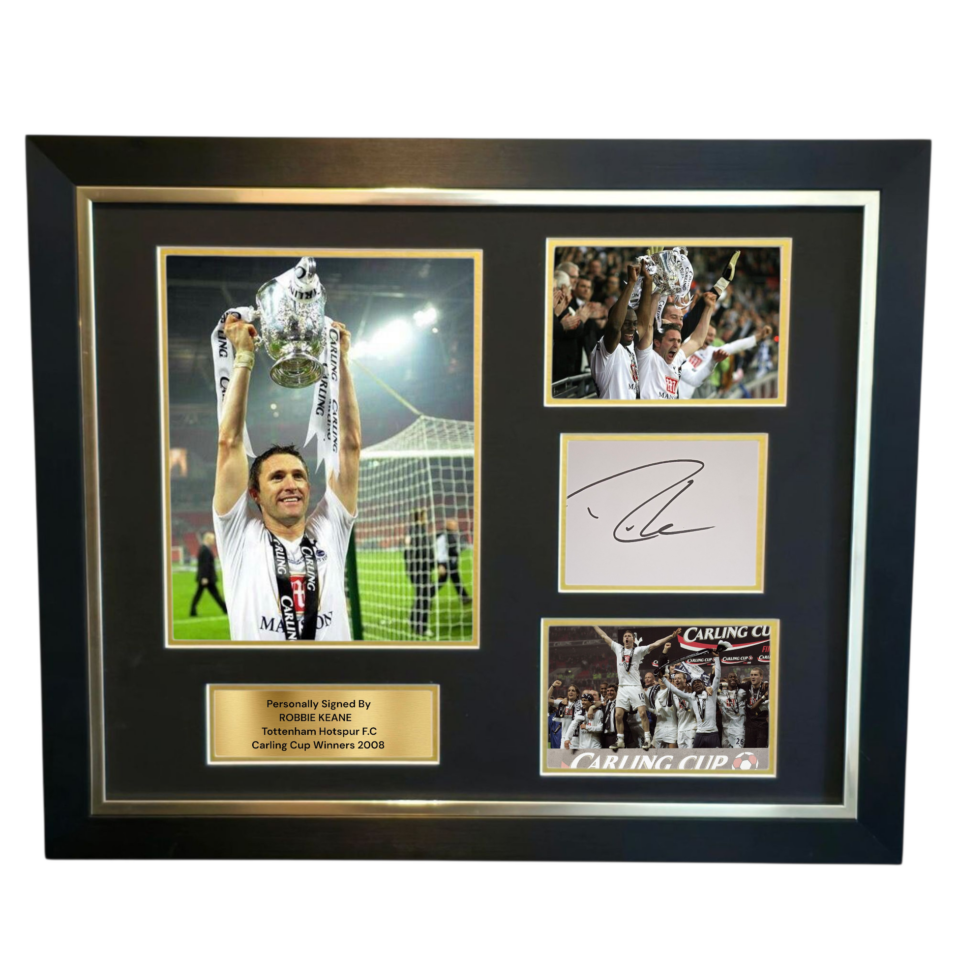 The White Card Is Mounted Up With Pictures From Robbie Winning Carabao Cup With Tottenham Hotspur In 2008.