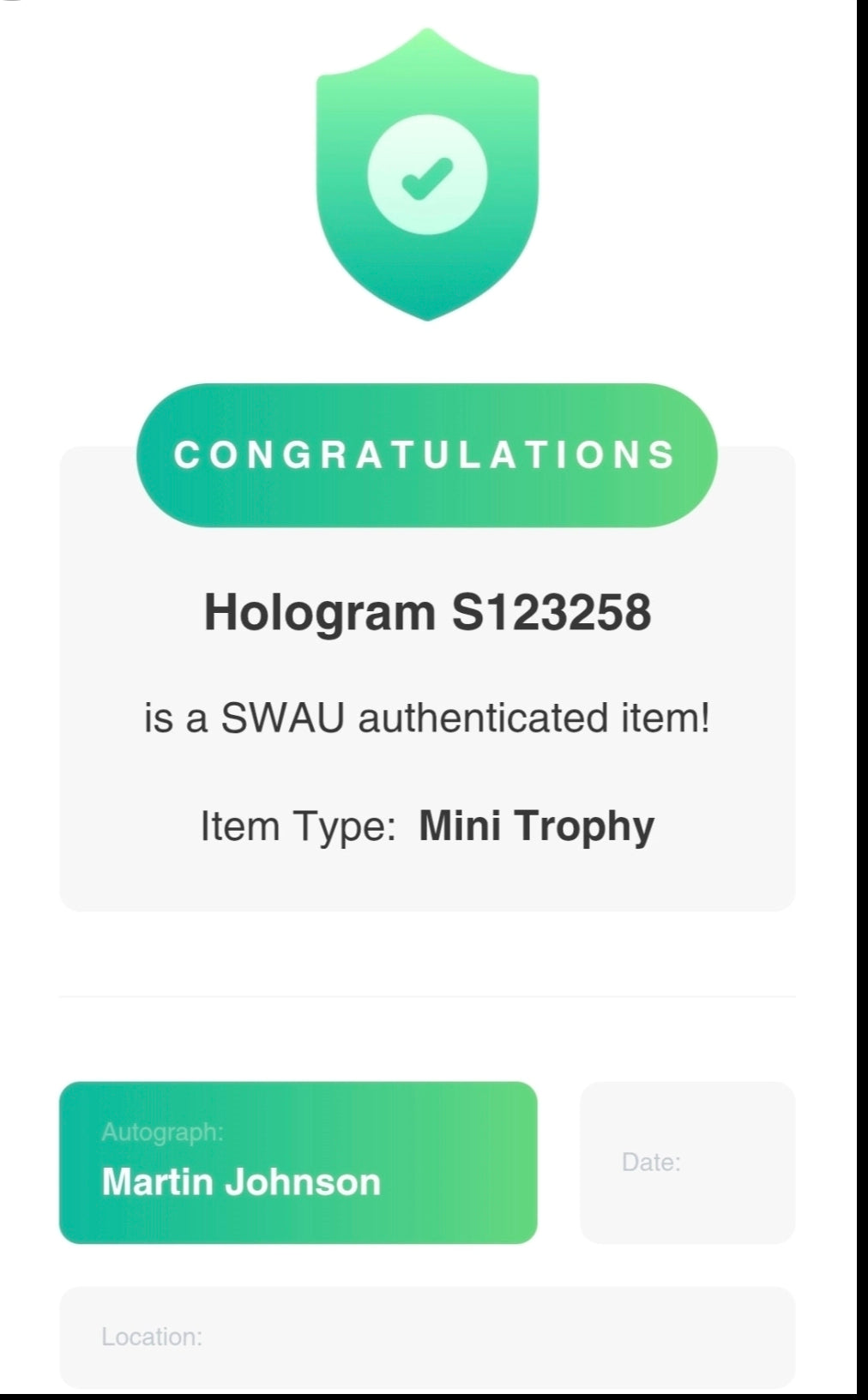 Also Been Authencaited By Company Swau And Its Be Stickered On The Back Of The Trophy.